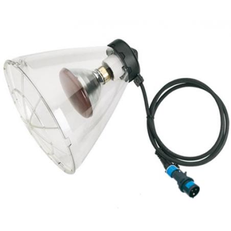 Portalampada trasparente che permette di direzionare il calore sugli animali e di non disperderlo.